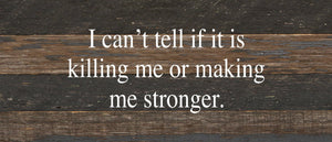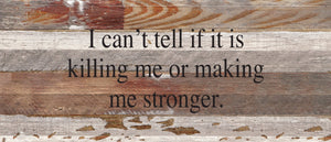 I can't tell if it is killing me or making me stronger. / 14"x6" Reclaimed Wood Sign