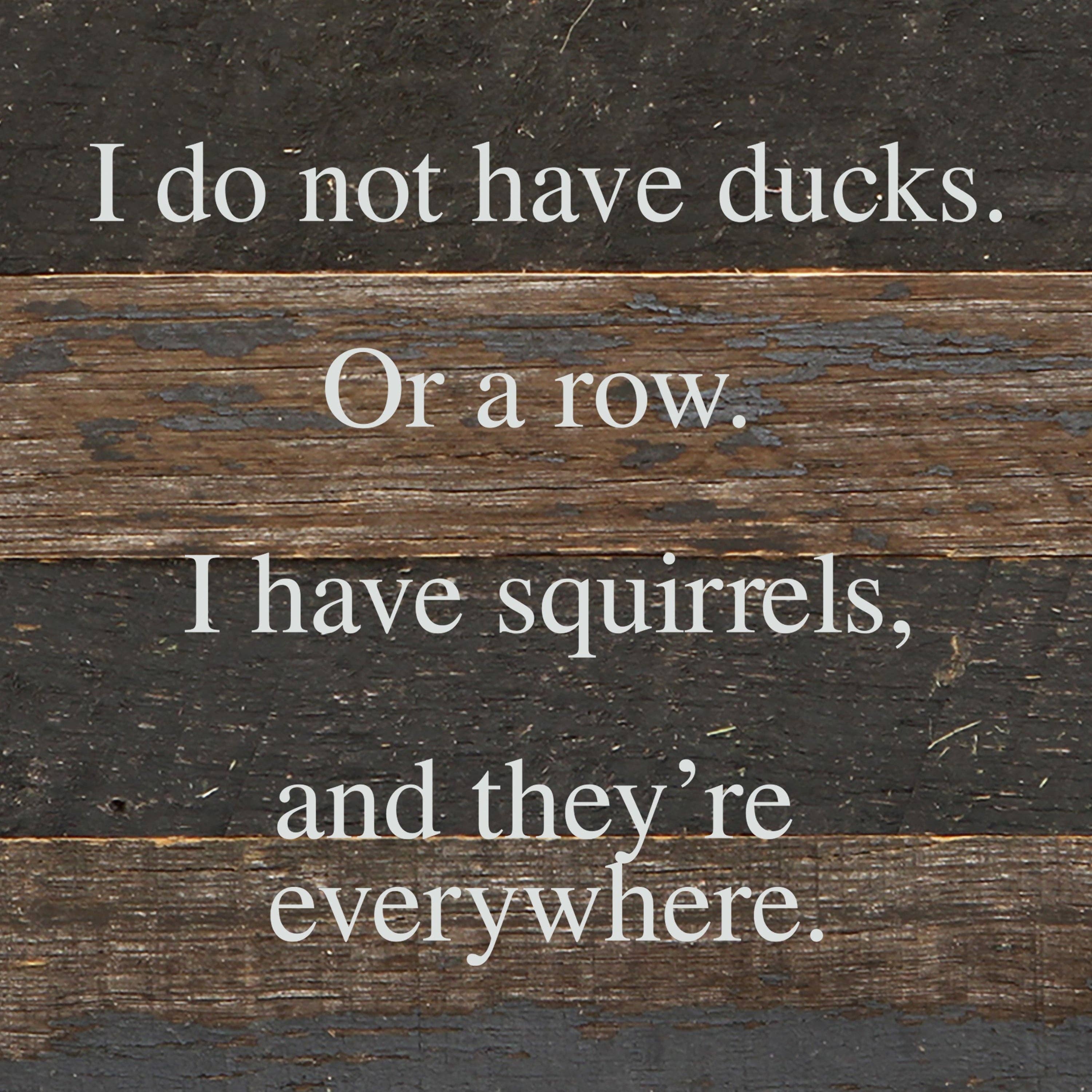 I do not have ducks. Or a row. I have squirrels, and they're everywhere. / 6"x6" Reclaimed Wood Sign