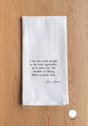 I do not want people to be very agreeable, as it saves me the trouble of liking them a great deal - Jane Austen Kitchen Towel