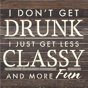 I don't get drunk I just get less classy and more fun / 14x14 Reclaimed Wood Sign