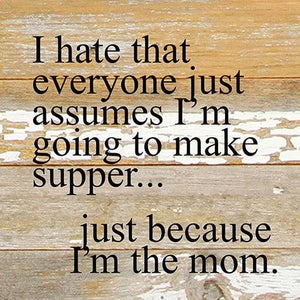 I hate that everyone just assumes I'm going to make supper, just because I am the mom. / 6"x6" Reclaimed Wood Sign