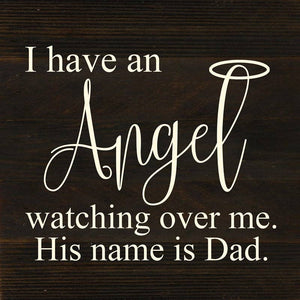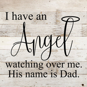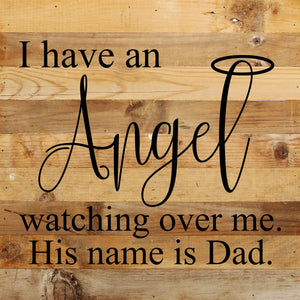I have an angel watching over me. His name is Dad. / 10"x10" Reclaimed Wood Sign