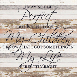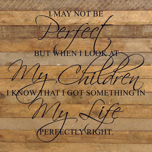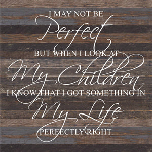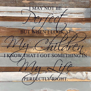 I may not be perfect but when I look at my children I know that I got something in my life perfectly right. / 28"x28" Reclaimed Wood Sign
