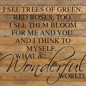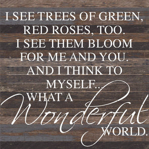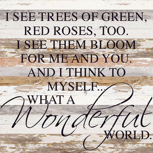 I see trees of green, red roses too. I see them bloom for me and you. And I think to myself... What a wonderful world. Armstrong / 28"x28" Reclaimed Wood Sign