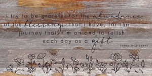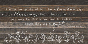 I try to be grateful for the abundance of the blessings that I have / 24"X12" Reclaimed Wood Sign