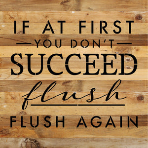 If at first you don't succeed, flush, flush again / 14x14 Reclaimed Wood Sign