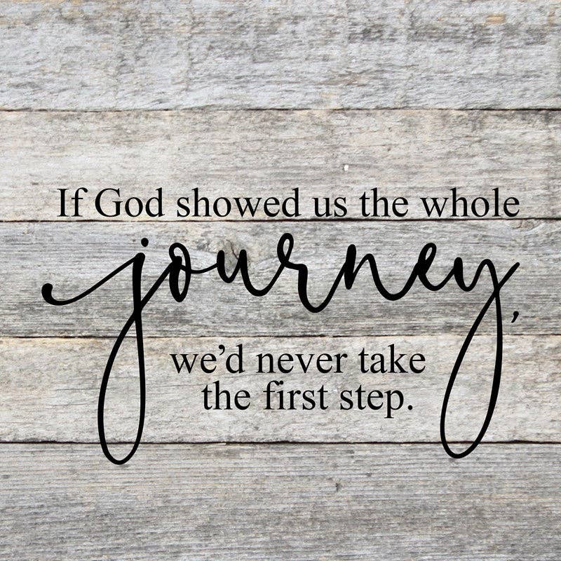 If God showed us the whole journey, we'd never take the first step. / 10"x10" Reclaimed Wood Sign