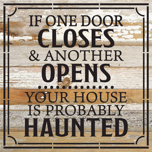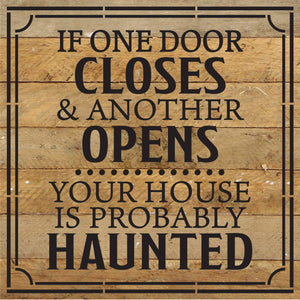 If one door closes a&nd another opens your house is probably haunted / 10x10 Reclaimed Wood Sign