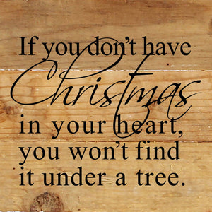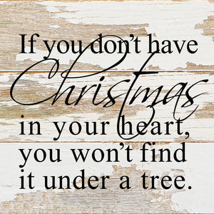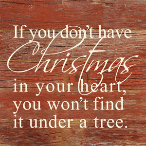 If you don't have Christmas in your heart, you won't find it under a tree. / 6"x6" Reclaimed Wood Sign