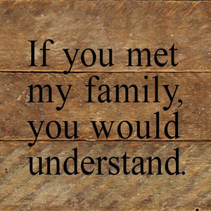 If you met my family, you would understand. / 6"x6" Reclaimed Wood Sign