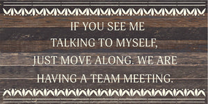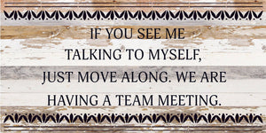 If you see me talking to myself, just move along. We are having a team meeting. / 24x12 Reclaimed Wood Sign