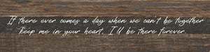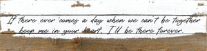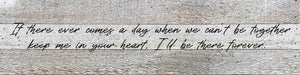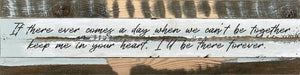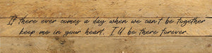 If there ever comes a day when we can't be together keep me in your heart. I'll be there forever 24x6 Reclaimed Wood Wall Decor Sign//24"x6" Reclaimed Wood Sign //Second Nature by Hand product is Made in the USA by skilled craftsmen in WI. We source distressed reclaimed materials throughout North America that ensures no two Second Nature by Hand signs in the world are the same. The wood for this sign may have come from a ship yard, old factory or a huge variety of other sources. Buying reclaimed wood products is good for the environment. Due to the reclaimed nature of this product, colors and wood tones/features may vary slightly.