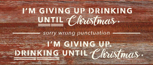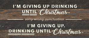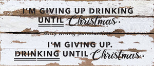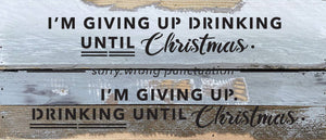 I'm giving up drinking until Christmas. Sorry wrong punctuation. I'm giving up. Drinking until Christmas / 14x6 Reclaimed Wood Wall Decor