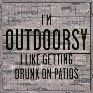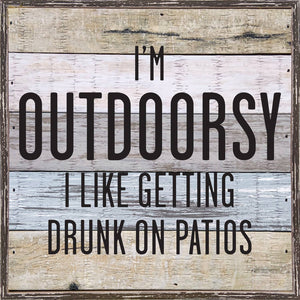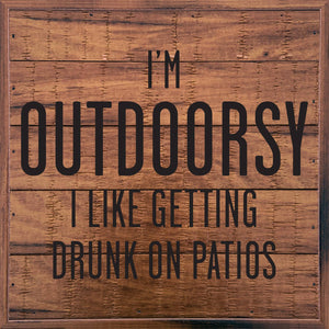 I'm Outdoorsy I like getting drunk on patios 8x8 Polystyrene Wall Décor / Indoor or Outdoor Sign