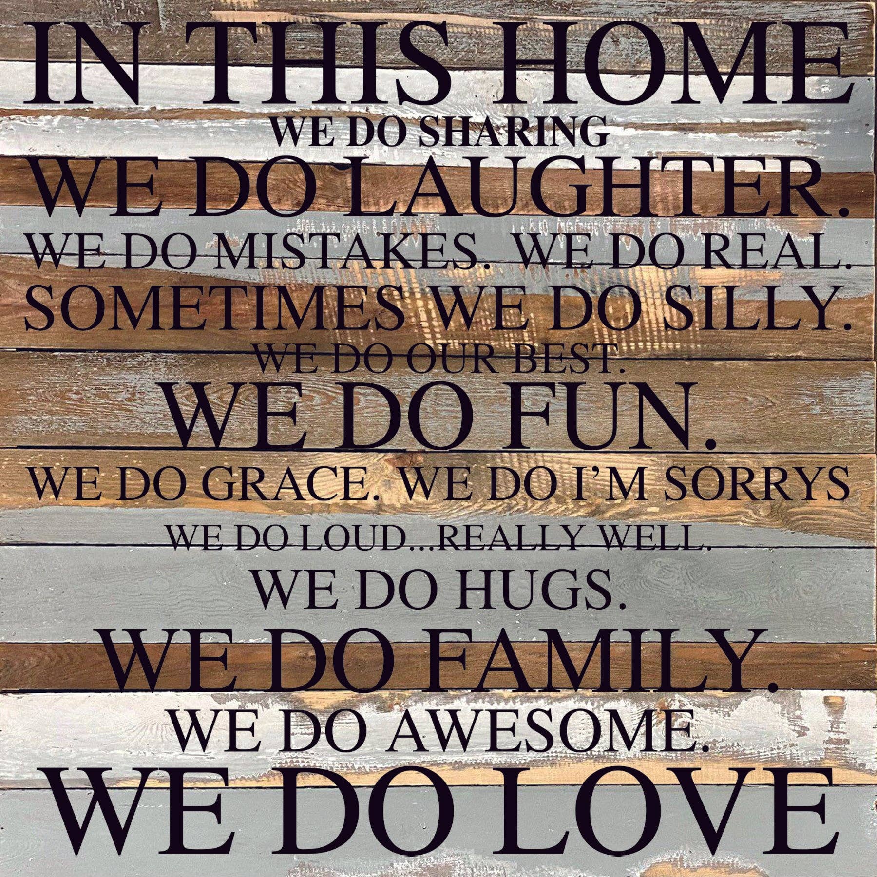 In this home we do sharing. We do laughter. We do mistakes. We do real. Sometimes we do silly. We do our best. We do fun. We do grace. We do I'm sorrys. We do loud... really well. We do hugs. We do family. We do awesome. We do love.