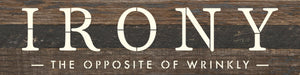 Irony: The opposite of wrinkly / 24"x6" Wood Sign