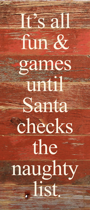 It's all fun & games until Santa checks the naughty list. / 6"x14" Reclaimed Wood Sign