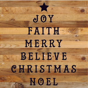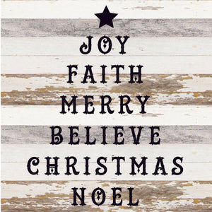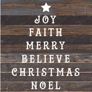 Joy Faith Merry Believe Christmas Noel (Tree) / 14X14 Reclaimed Wood Sign