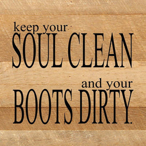 Keep your soul clean and your boots dirty. / 10"x10" Reclaimed Wood Sign