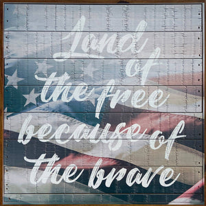 Land of the free because of the brave/ 12"x12" Poly Sign