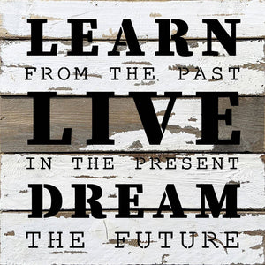 Learn from the past. Live in the present. Dream the future / 14x14 Reclaimed Wood Wall Decor