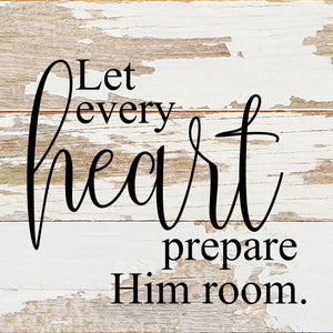 Let every heart prepare him room. / 6"x6" Reclaimed Wood Sign