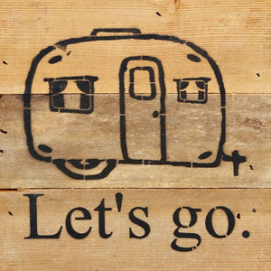 Let's go. (vintage camper graphic) / 6"x6" Reclaimed Wood Sign