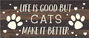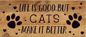 Life is good but Cats make it better / 14x6 Reclaimed Wood Sign