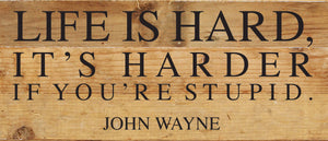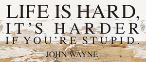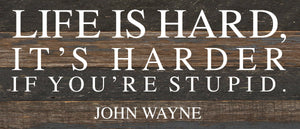 Life is hard; it's harder if you're stupid ~ John Wayne / 14"x6" Reclaimed Wood Sign