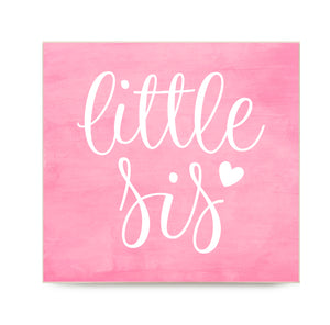 Little Sis with Pink Watercolor Decorative Wooden Block