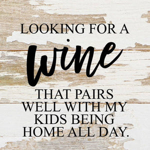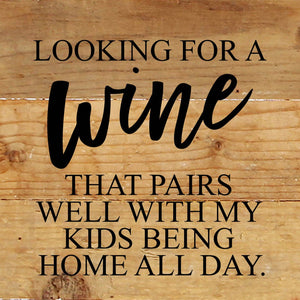 Looking for a wine that pairs well with my kids being home all day. / 6"x6" Reclaimed Wood Sign