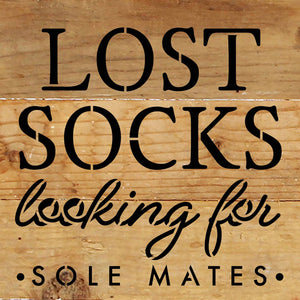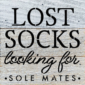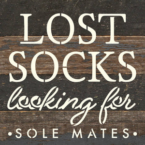 Lost Socks. Looking for Sole Mates 6x6 Reclaimed Wood Wall Décor Second Nature by Hand product are Made in the USA by skilled craftsmen in WI. We source distressed reclaimed materials throughout North America that ensures no two Second Nature by Hand signs in the world are the same. The wood for this sign may have come from a ship yard, old factory or a huge variety of other sources. Buying reclaimed wood products is good for the environment. Due to the reclaimed nature of this product, colors and wood tones/features may vary slightly.