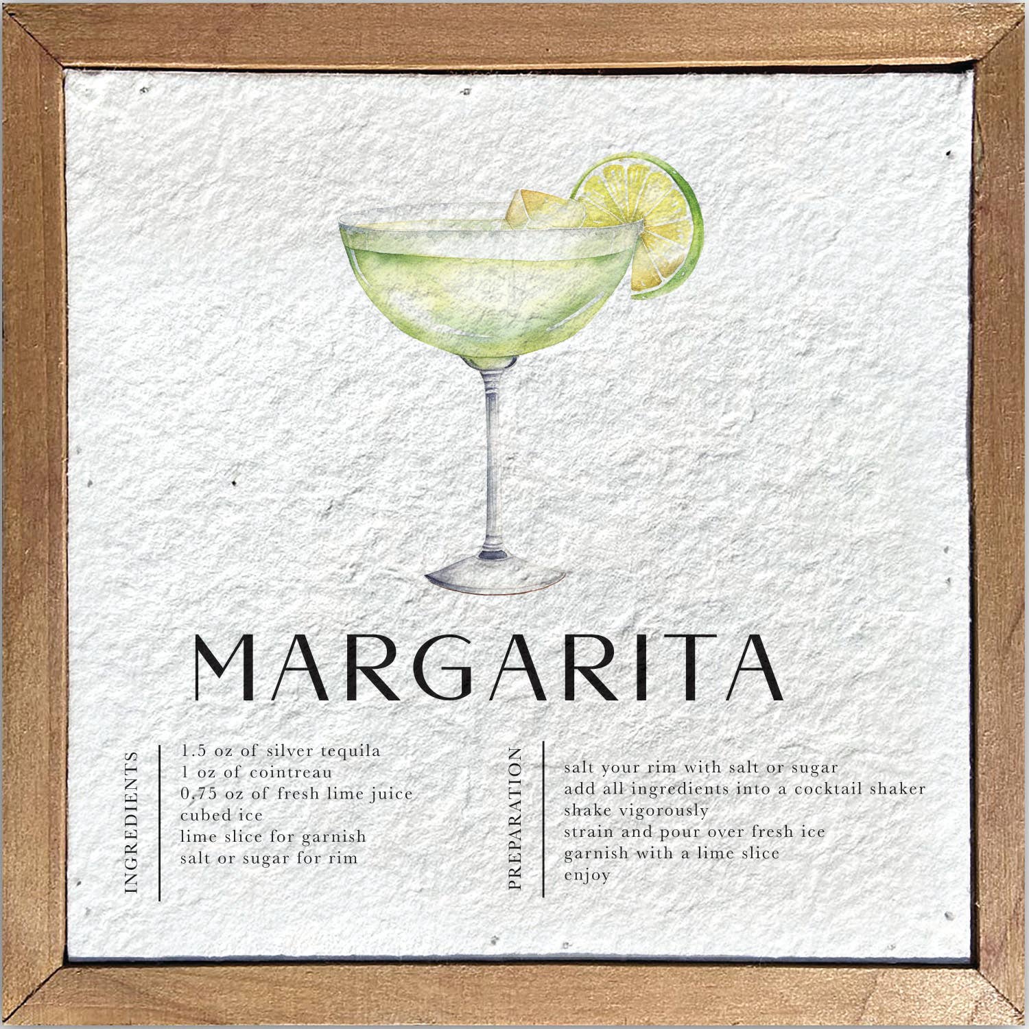 Margarita Recipe 6x6 Pulp Paper Wall Décor. Our collection of pulp paper wall decor is made from textured paper that is designed and printed in house in the United States.