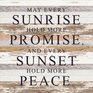 May every sunrise hold more promise, and every sunset hold more peace. / 28"x28" Reclaimed Wood Sign
