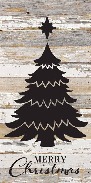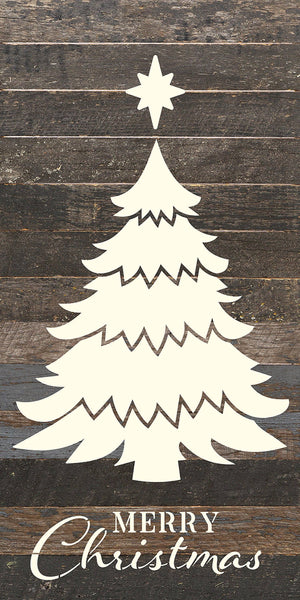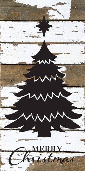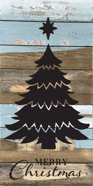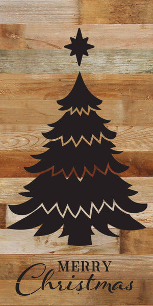Merry Christmas Christmas Tree / 12x24 Reclaimed Wood Wall Decor