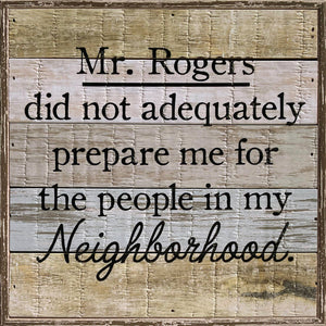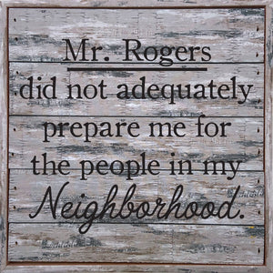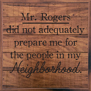 Mr. Rogers did not adequately prepare me for the people in my neighborhood 8x8 Polystyrene Wall Décor / Indoor or Outdoor Sign