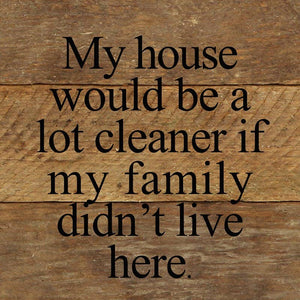 My house would be a whole lot cleaner if my family didn't live here. *Artist Series* / 6"x6" Reclaimed Wood Sign