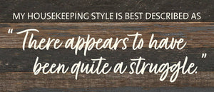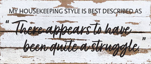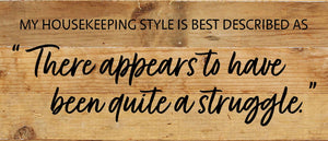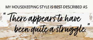 My Housekeeping style is best descibed as "There appears to have been quite a struggle" / 14x6 Reclaimed Wood Wall Decor
