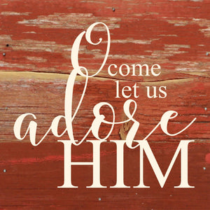 O come let us adore Him. / 6"x6" Reclaimed Wood Sign