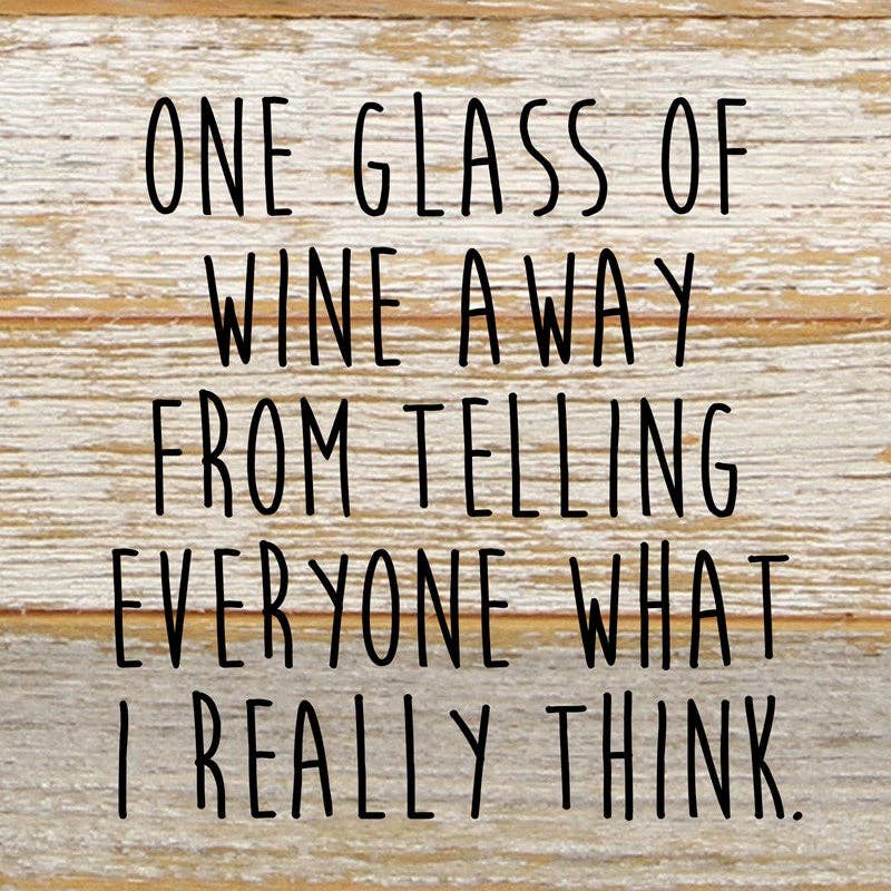 One glass of wine away from telling everyone what I really think / 6"x6" Reclaimed Wood Sign