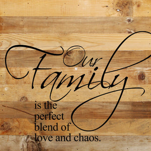 Our family is the perfect blend of love and chaos. / 10"x10" Reclaimed Wood Sign