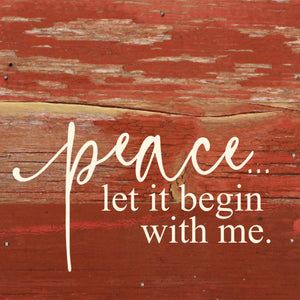 Peace...let it begin with me. / 6"x6" Reclaimed Wood Sign