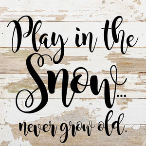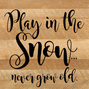 Play in the snow...never grow old. / 10"x10" Reclaimed Wood Sign