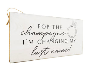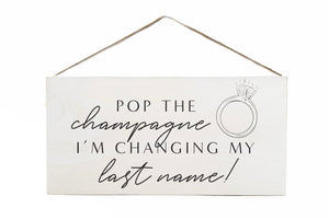 Pop the Champagne I'm changing my last name Wooden Door Hang