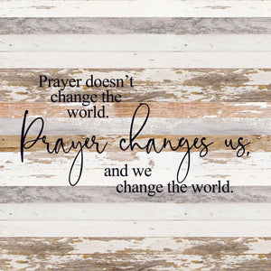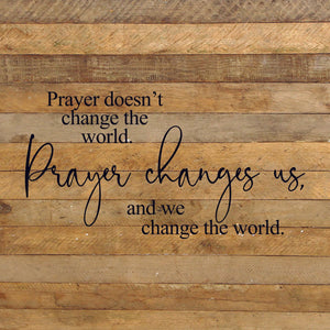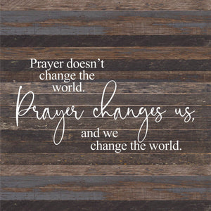 Prayer doesn't change the world. Prayer changes us and we change the world. / 28"x28" Reclaimed Wood Sign