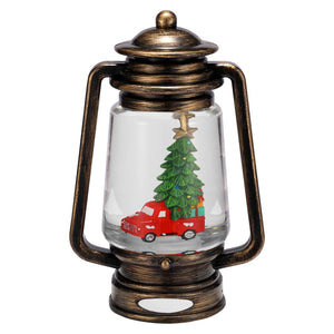 Red Truck in Lantern Shaped Snow Globe Ornament