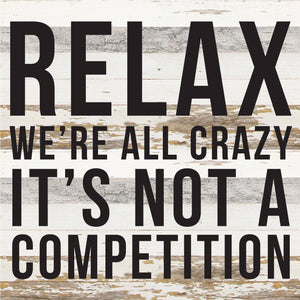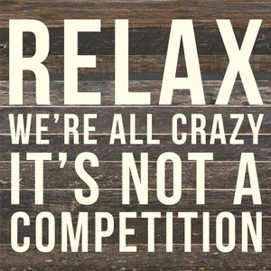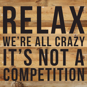 Relax We're all crazy it's not a competition / 14x14 Reclaimed Wood Sign