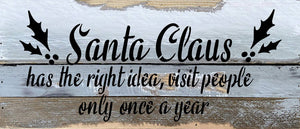 Santa Claus has the right idea, visit people only once a year / 14x6 Reclaimed Wood Wall Decor