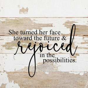 She turned her face toward the future & rejoiced in the possibilities / 10"x10" Reclaimed Wood Sign
