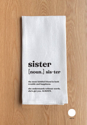 Welcome the warmth of family and the joy of sisterhood into your kitchen with our Sister Definition White Kitchen Towel. Crafted by Second Nature by Hand, this tea towel is not just a kitchen accessory, but a celebration of bonds. Like all our products, it tells a story, carries a soul, and captures a moment of history. It's more than just a towel; it's a testament to our commitment to quality and tradition. Please note that our items are handmade to order with a shipping window of about two weeks.